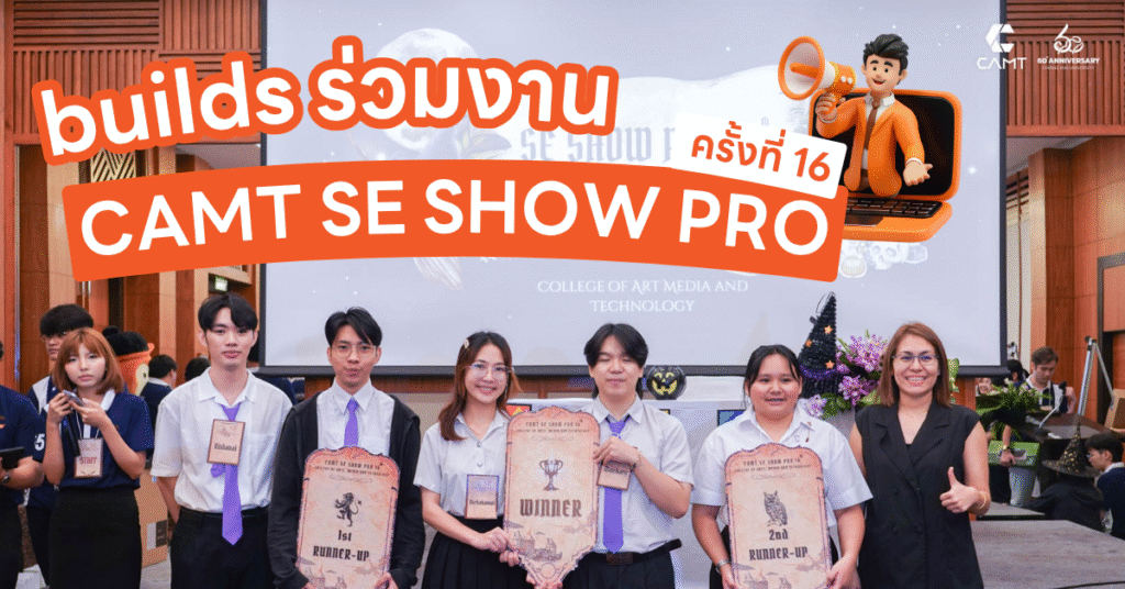 builds ร่วมงาน CAMT SE SHOW PRO ครั้งที่ 16 : การแสดงนวัตกรรมโปรเจกต์จบจากนักศึกษา สาขาวิศวกรรมซอฟต์แวร์ วิทยาลัยศิลปะ สื่อ และเทคโนโลยี มหาวิทยาลัยเชียงใหม่